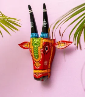 Indian Handcrafted Wooden Cow Head Wall Hanging