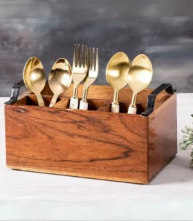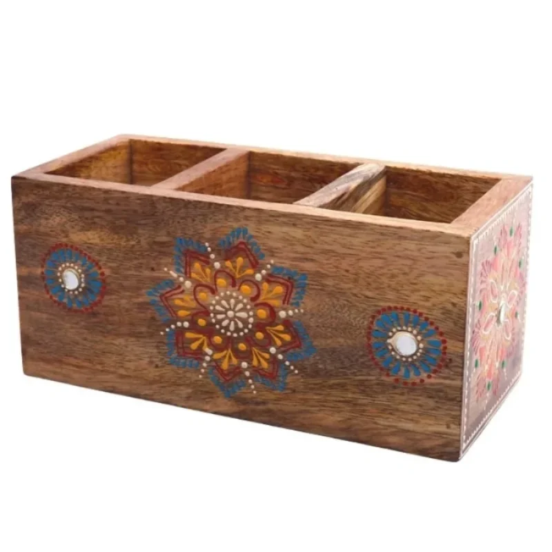 Artisan Mango Wood Hand-Painted Cutlery Stand
